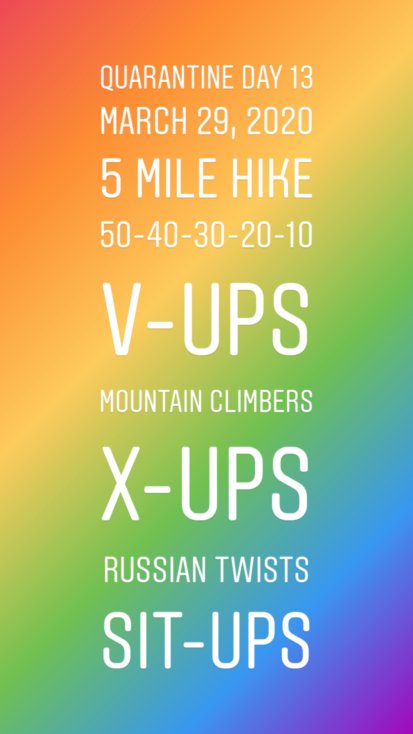 Day 1 – Sunday, March 29, 2020 – Quarantine Day 13