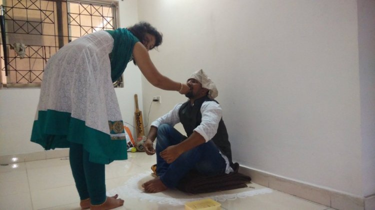 Then the brother is made to sit on that pedestal like seat. Once everything is set, the sister takes the plate which holds the worshipping material and circles it before the brother’s face. Gosh, it is so hard to explain it in plain English, without a video. 😁