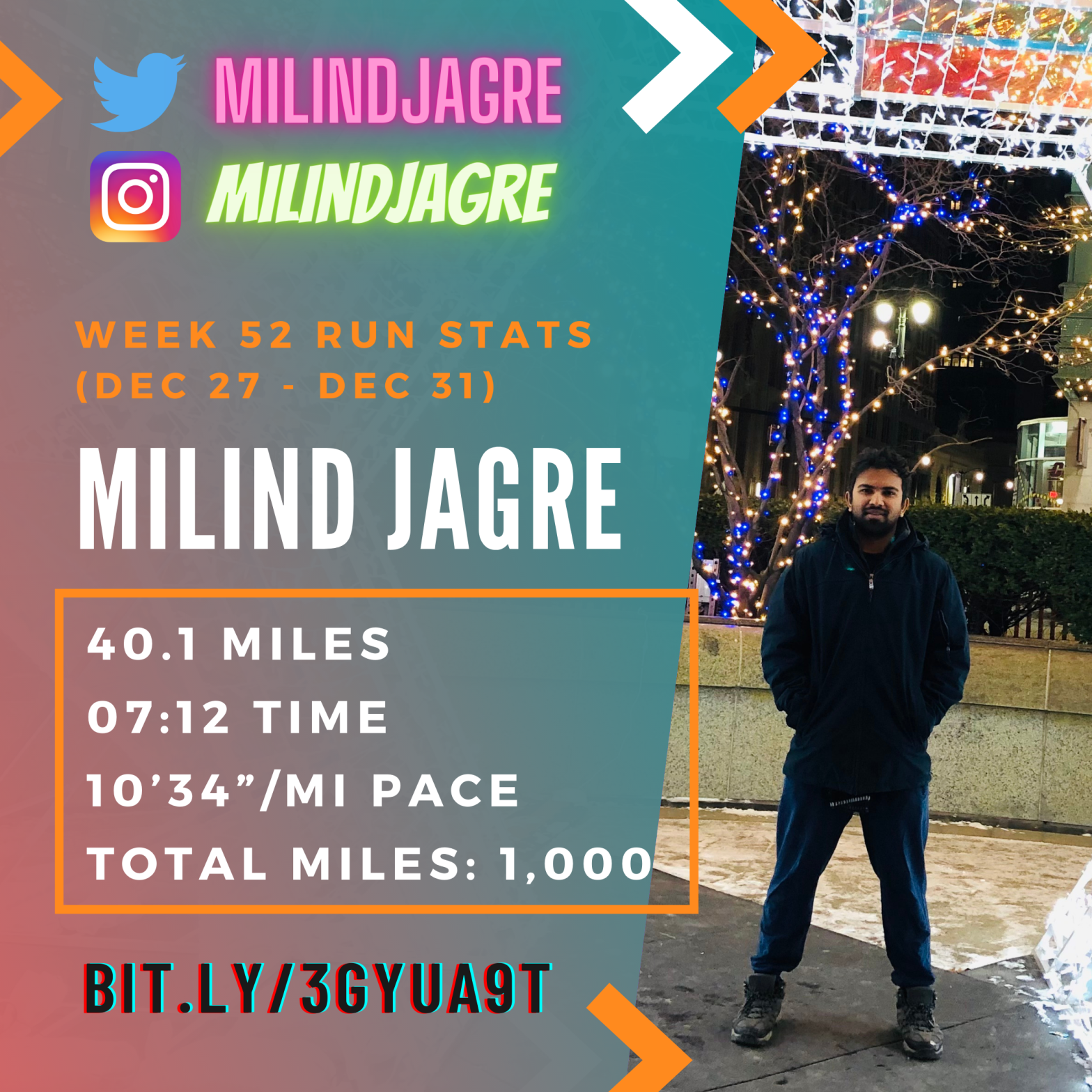 Week 52 (December 27 – December 31) – Running 1,000 miles in 2020